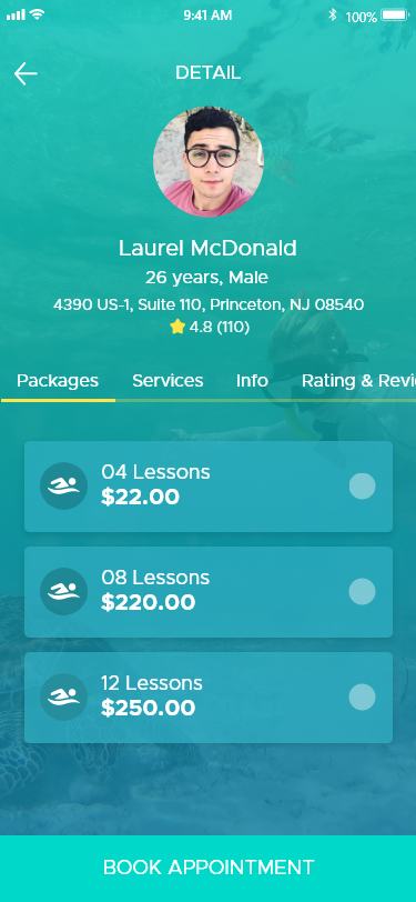 Visit instructor profiles to view packages, services, info, and ratings/reviews for informed booking decisions.